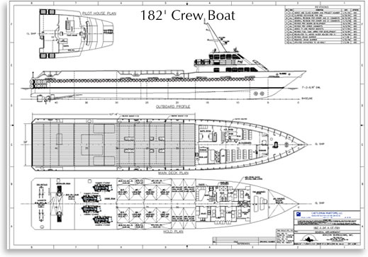 Greg Castleman says, “They are definitely a crewboat as far as the design philosophy: high-speed vessel that meets subdivision requirements for carrying passengers.” They are currently under charter contract
